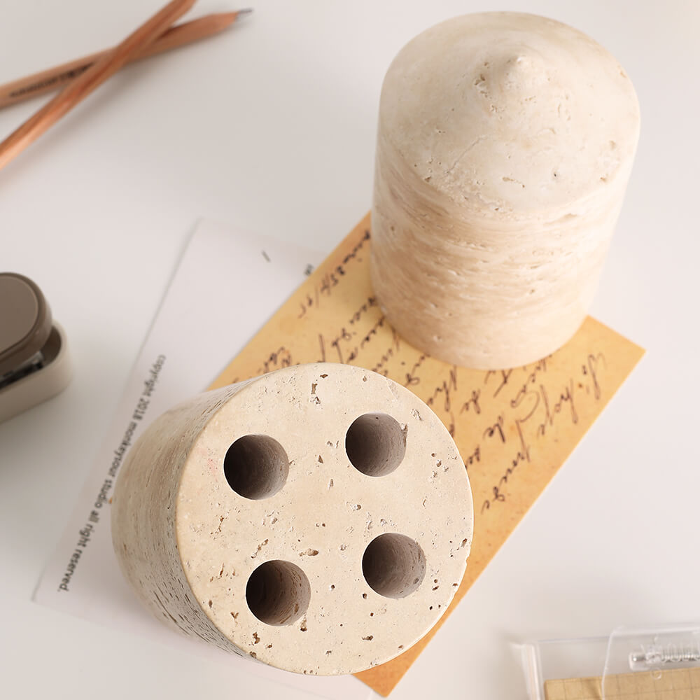 Travertine Rotating Revolver Pen Holder